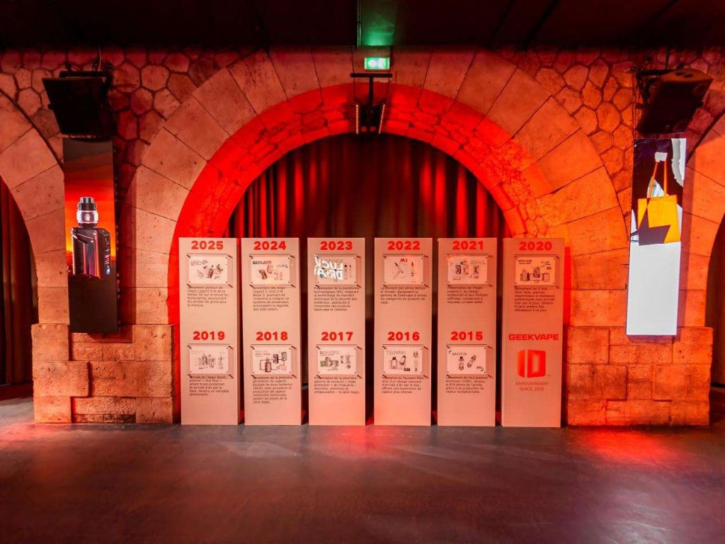 To honor its roots, Geekvape curated a History Zone, charting the company’s journey from 2015 to 2025. Each year was represented by one or two iconic products, accompanied by logos, original design sketches, and product stories. This linear exhibition offered a vivid narrative of Geekvape’s growth, allowing attendees to trace product innovation and brand evolution over the past decade.