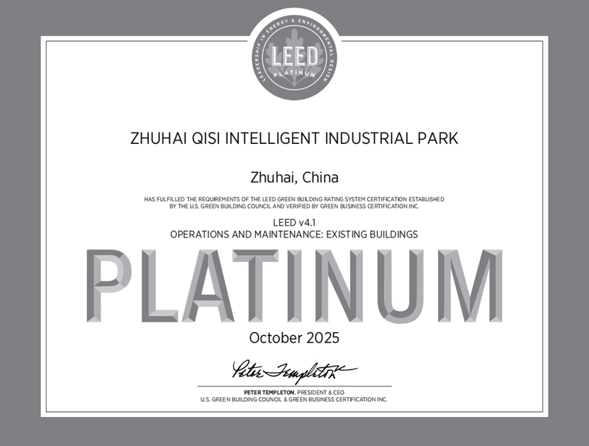 Zhuhai Qisitech Intelligent Industrial Park Achieves Dual LEED Platinum Certifications