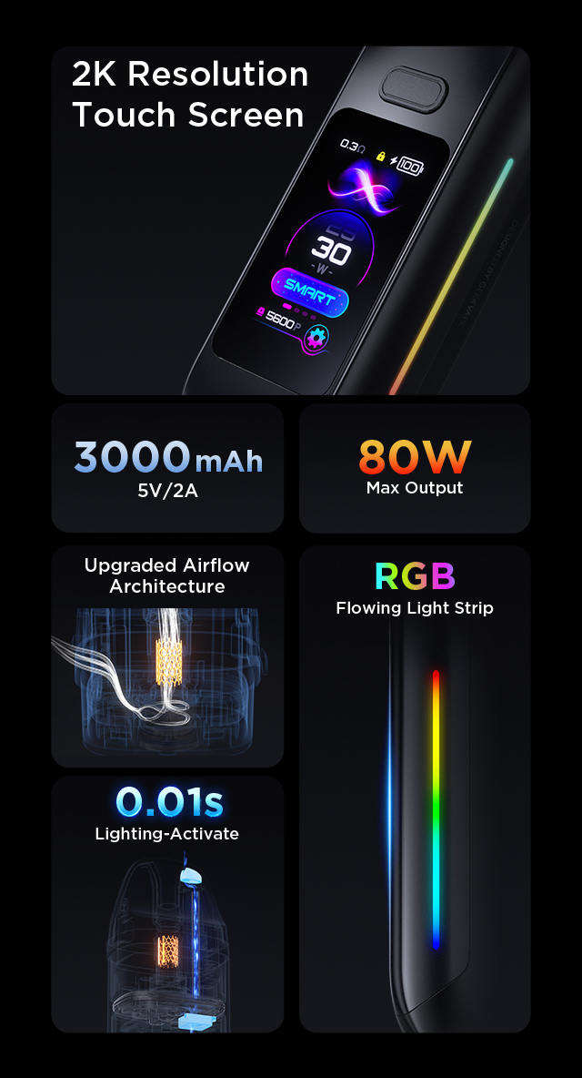 Instantly elevates power to 80W, delivering an unparalleled burst of intensity and flavor.