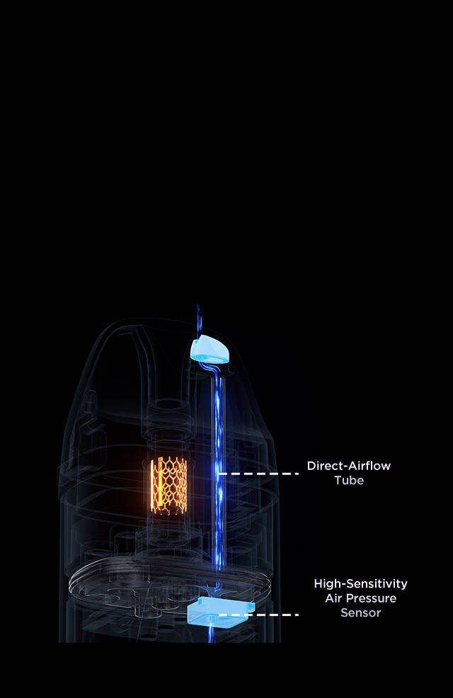 directly to the atomizer, increasing e-liquid efficiency to 95%